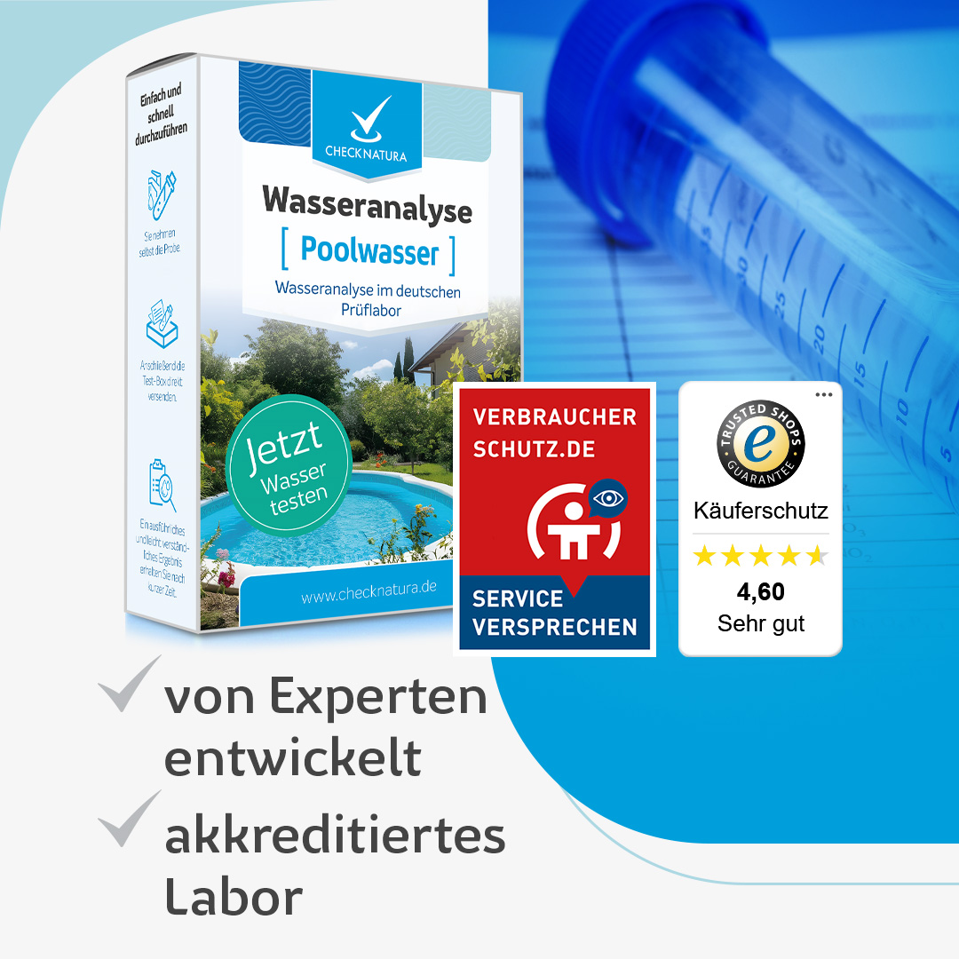 Empfohlen wird mindestens ein Test pro Poolsaison. Bei starker Nutzung, trübem Wasser oder auffälligem Geruch sollte die Wasserqualität zusätzlich überprüft werden.