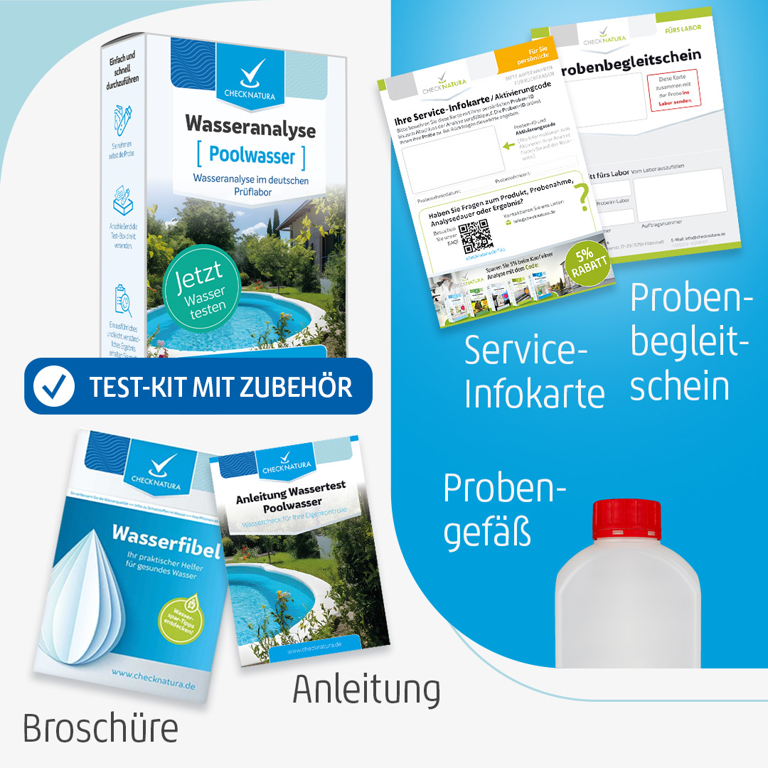 Produktinformationen "Poolwasser Test: Laboranalyse + Teststreifen"